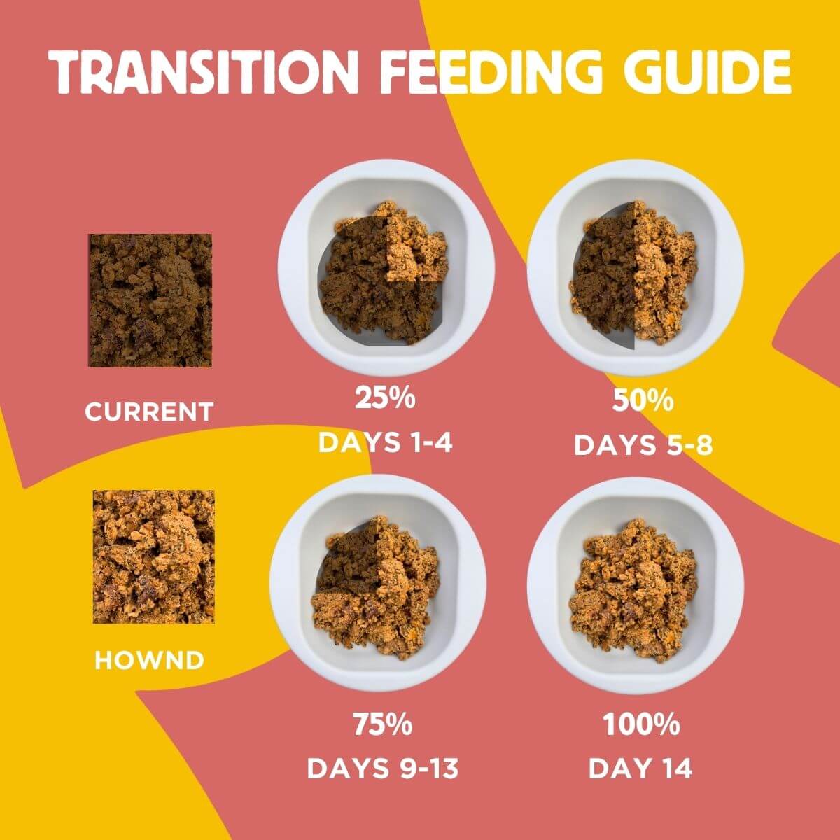 Yes, mix HOWND Superfood with your puppy’s current food until 9 months old, and fully transition from 9 months (small breeds) and 12-18 months (Large to Giant breeds).
