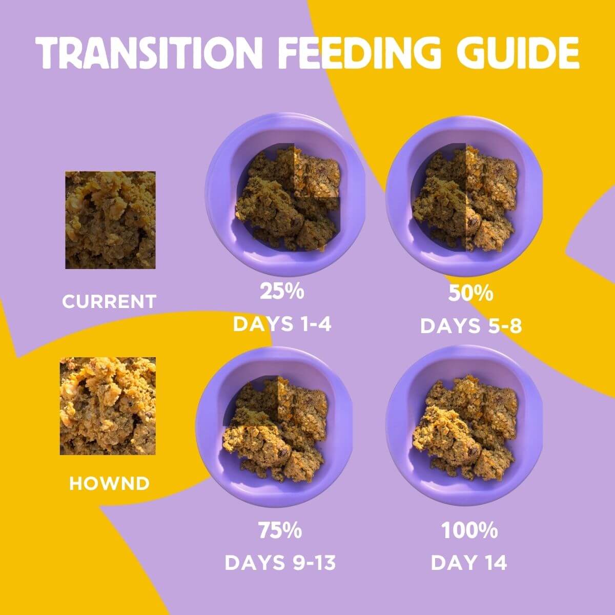 Yes, mix HOWND Superfood with your puppy’s current food until 9 months old, and fully transition from 9 months (small breeds) and 12-18 months (Large to Giant breeds).