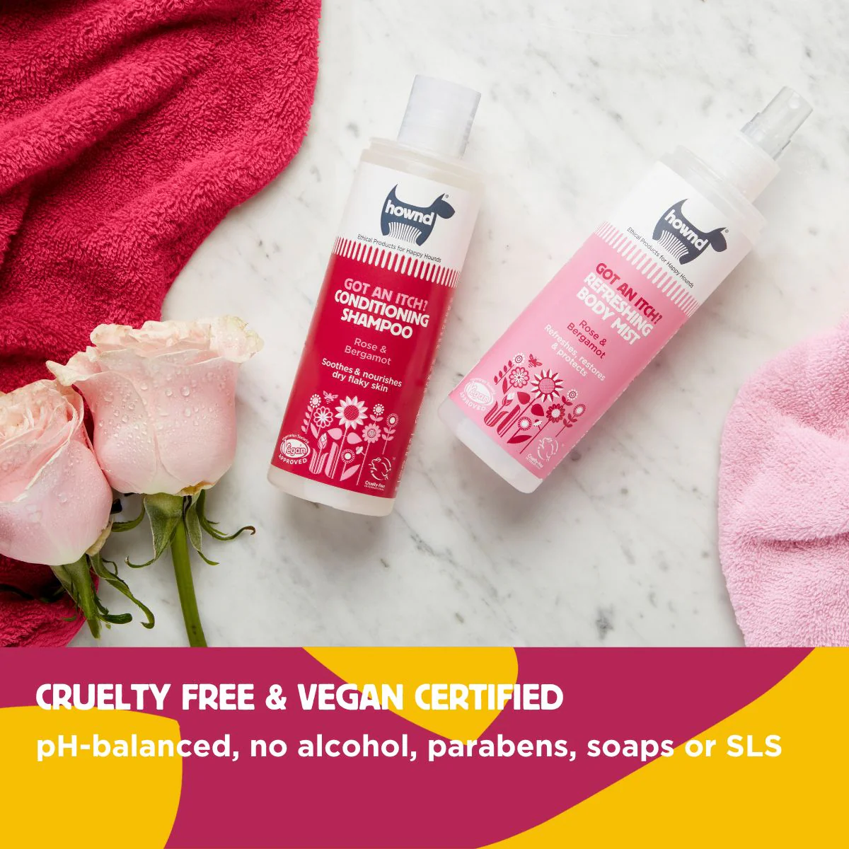 Got An Itch? Conditioning Shampoo is specially formulated to help relieve your dog’s dry flaky skin and reduce itching. Restoring lustre to dull coats of all breeds, Got an Itch? penetrates the hair follicles of long coats, while deeply cleansing and detangling. For dogs with short coat, simply use less shampoo.