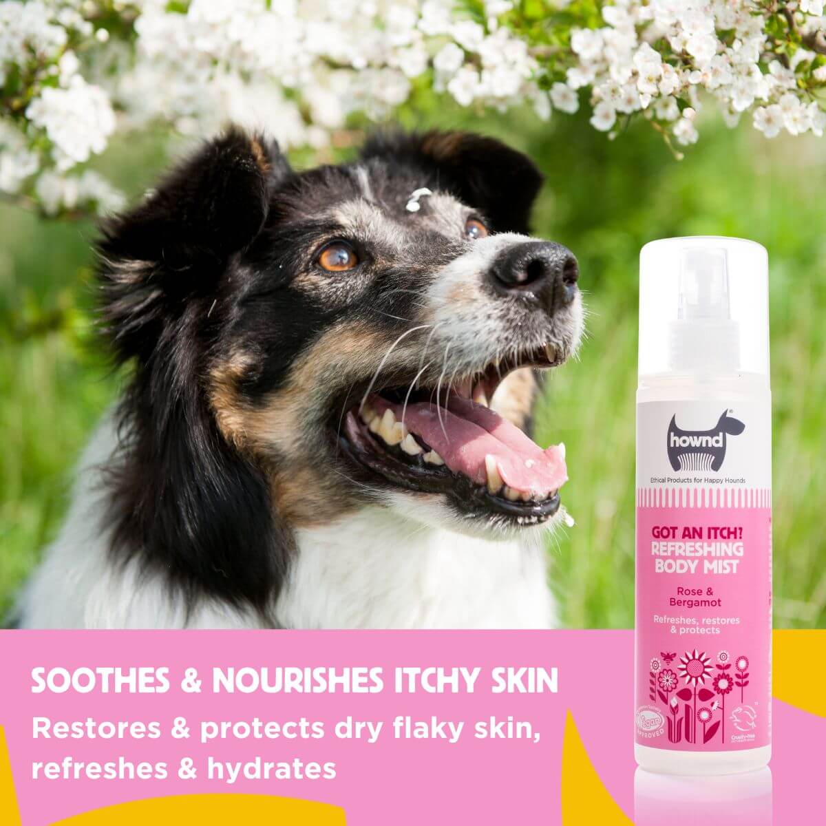 Got An Itch? Body Mist can be sprayed onto a dog’s dry fur after bathing and between washes. This will help soothe and nourish dry and flaky skin, whilst giving it a gleaming, static free and refreshed coat. Just spritz, then brush or rub the mist into your dog’s fur to release the delicate scent of rose and petitgrain essential oils.