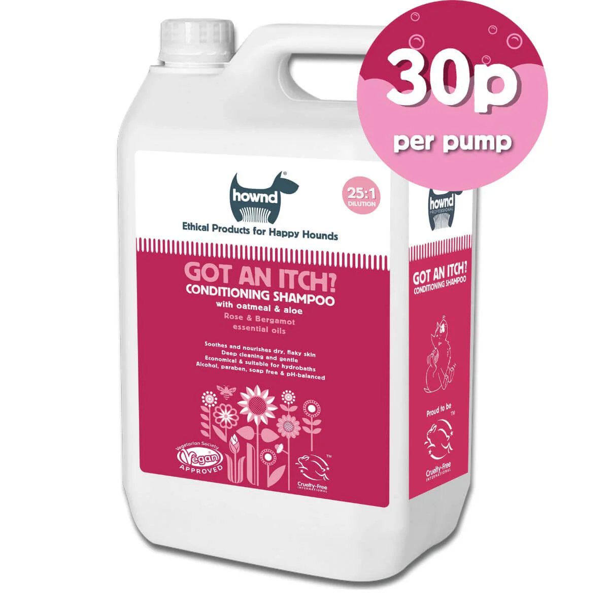 Designed to soothe and nourish dry flaky skin as well as prevent reoccurrence, Professional Got An Itch? Conditioning Shampoo restores lustre and sheen to dull coats. Suitable for dogs of all breeds, this easy rinse formula is ideal for hydrobaths and standard salons and has an economic 25:1 dilution ratio. With intense botanical conditioning extracts, it is Ideal for detangling curly coats, and we recommend you simply use less formula for short-coated breeds.