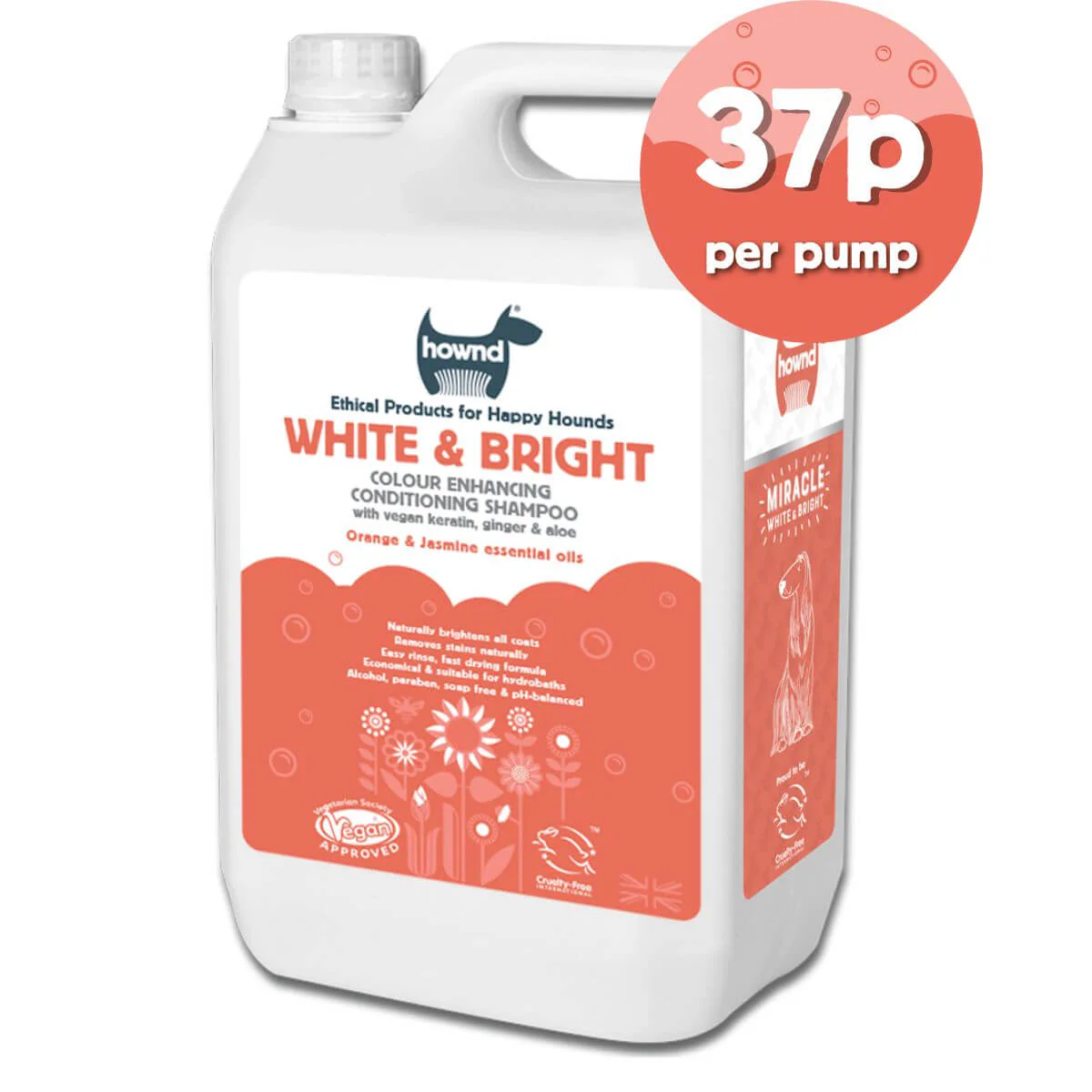 A Vegan alternative to Keratin (hydrolysed vegetable protein) protects and repairs by adding moisture and conditioning, while Ginger extract strengthens and further conditions the coat. Like all HOWND grooming ranges, Miracle White & Bright contains Aloe Vera Leaf Juice and an exquisite blend of essential oils.