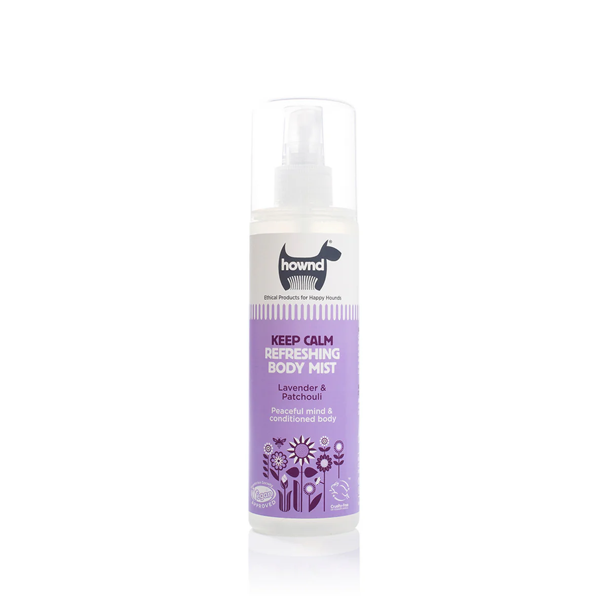 Keep Calm Body Mist contains naturally calming lavender and patchouli, which can help nervous or tired dogs feel happier and more relaxed. Simply spray onto a dog’s dry fur after or between washes, before brushing or rubbing through the coat.