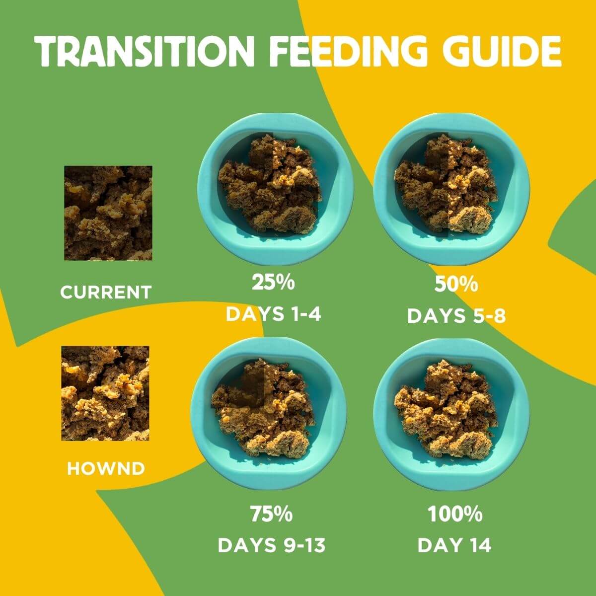 Yes, mix HOWND Superfood with your puppy’s current food until 9 months old, and fully transition from 9 months (small breeds) and 12-18 months (Large to Giant breeds).